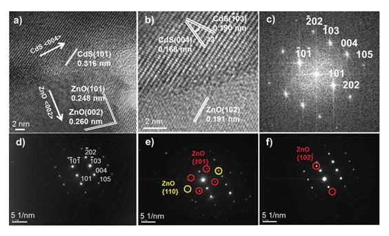 圖3:CdS/ZnO樹枝狀異質結在TEM下的結構表征。